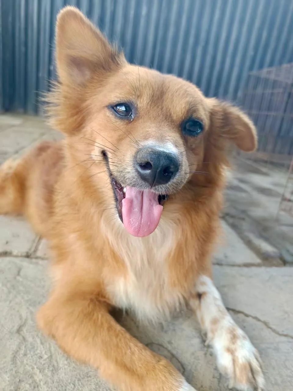 Construction workers rescued this sad looking little girl from a busy street. She’s a calm and friendly little soul, just looking for the right family to adopt her.